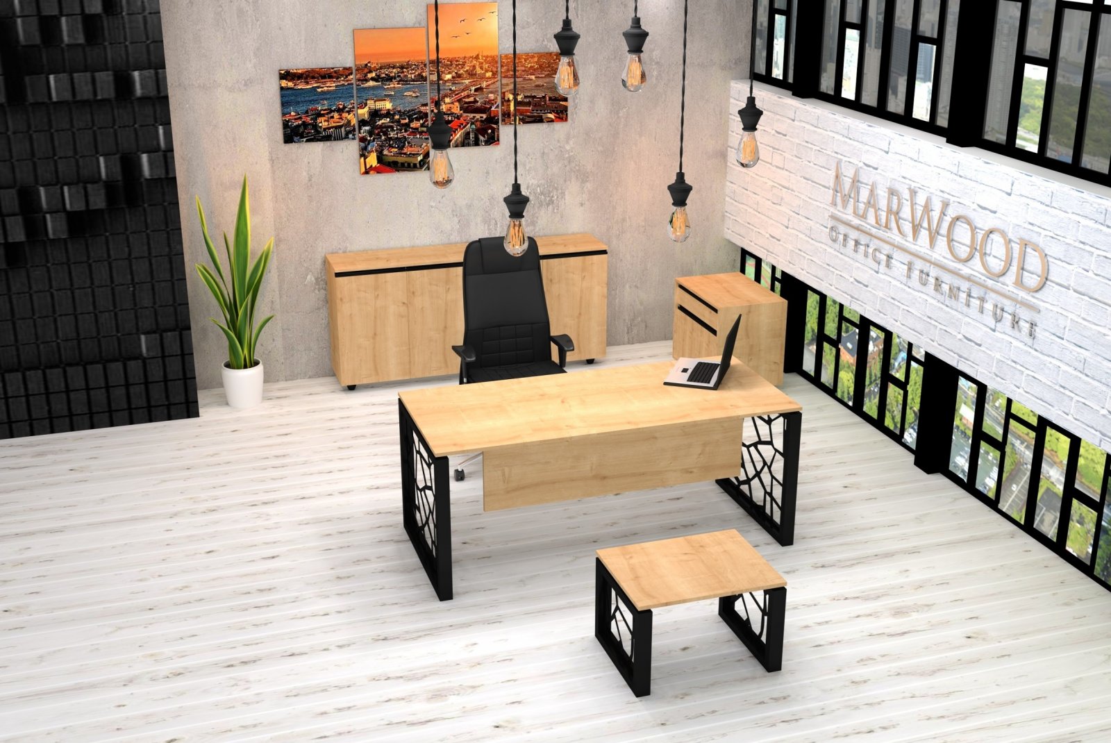 Цена на сайте указана за комплект : стол руководителя, тумба подкатная, гардероб, шкаф со стеклом.