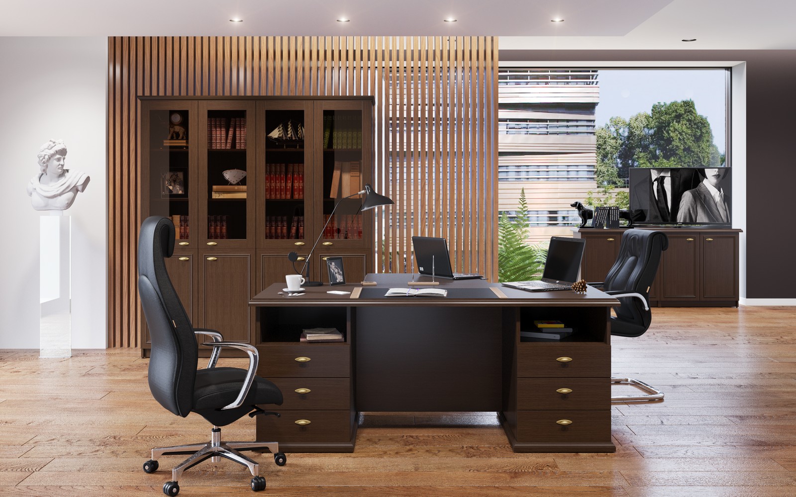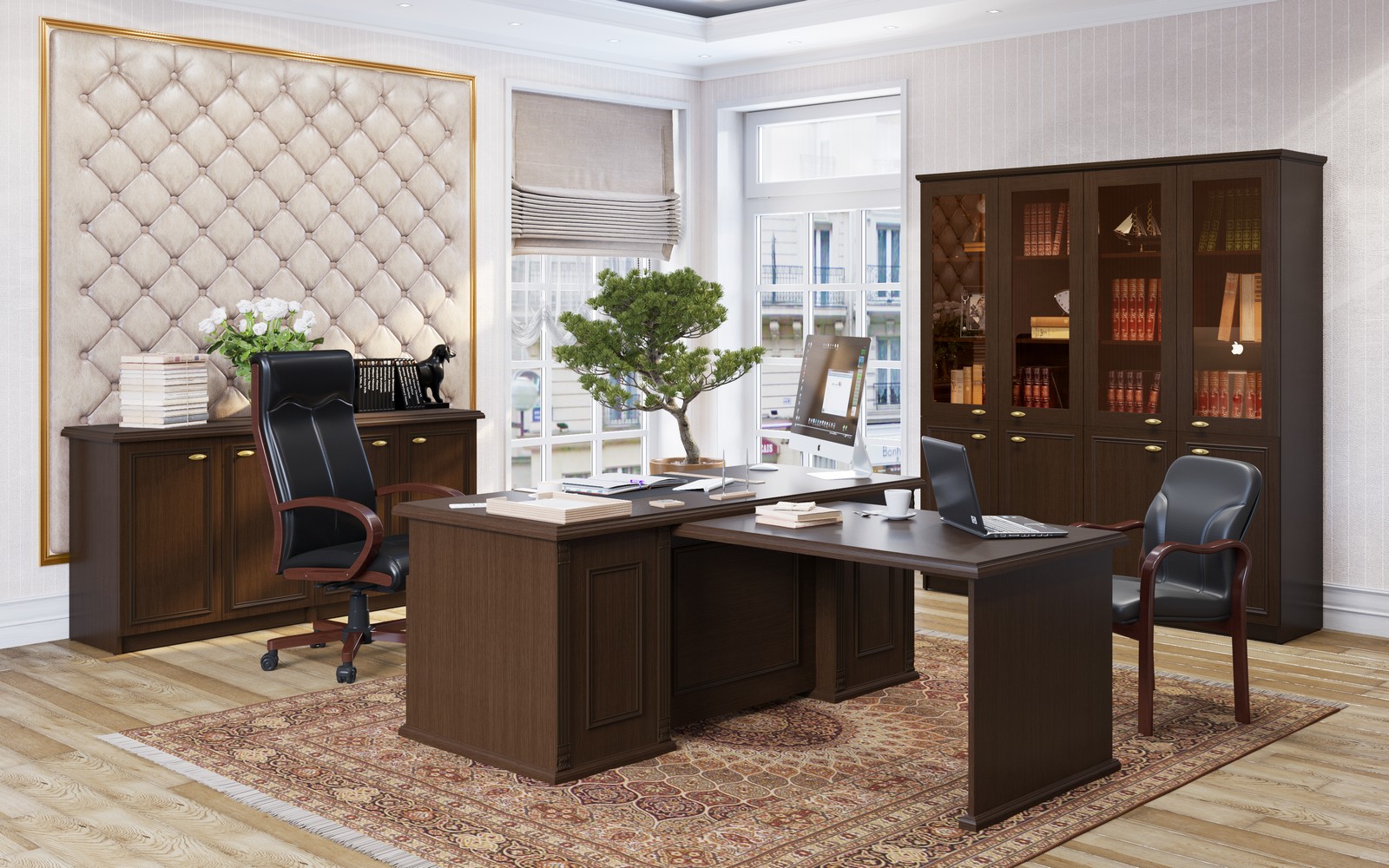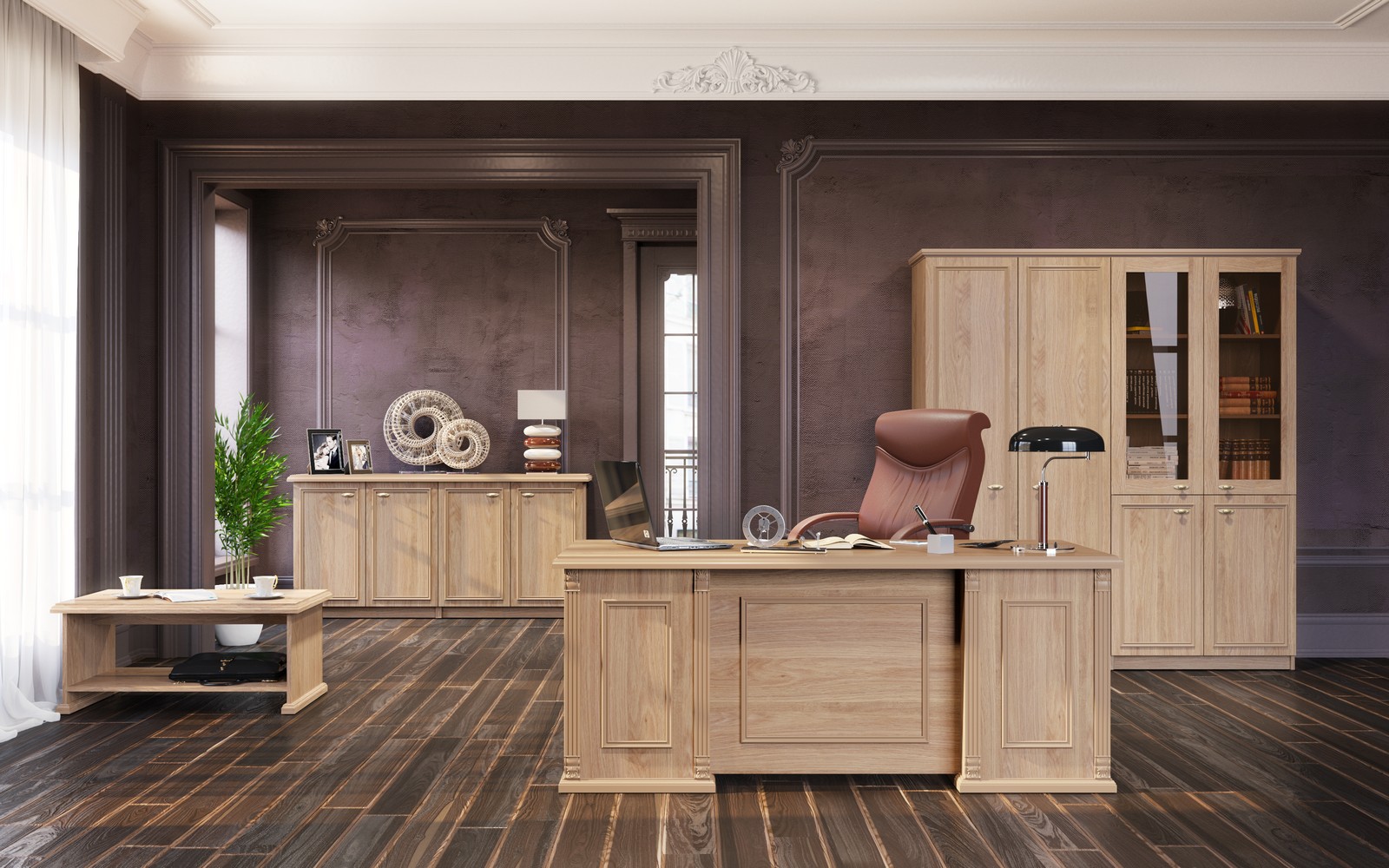 RAUT - первый по-настоящему классический кабинет эконом класса. Солидные профильные рамки, накладной орнамент, стильные ручки «под бронзу»… и демократичная, доступная цена. Да, теперь это возможно. Цельный образ в лучших традициях мебельного искусства. Настоящая классика. RAUT.