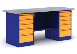 Верстак металлический двухтумбовый с тумбой и драйвером. Верстак комплектуется из отдельных модулей: