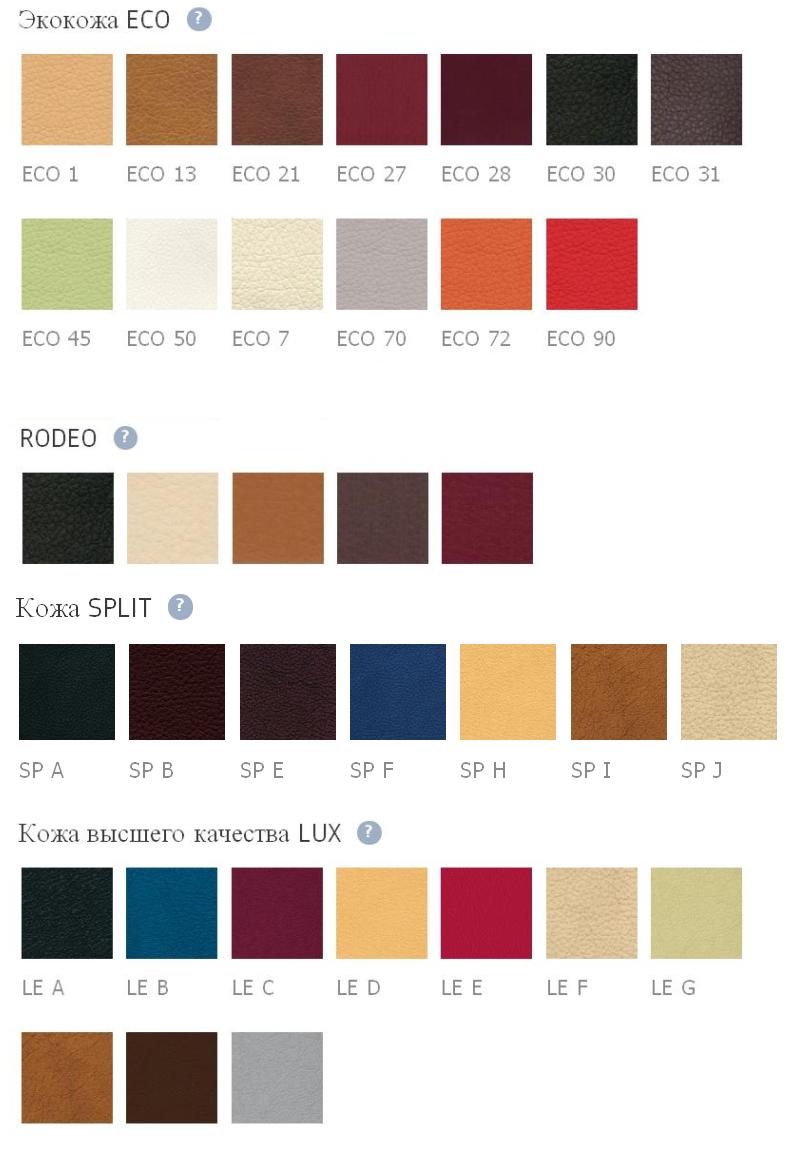- Офисное кресло может быть выполнено в натуральной коже Lux ,Split или ЭКОКОЖЕ.