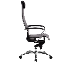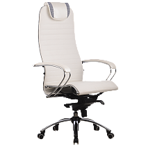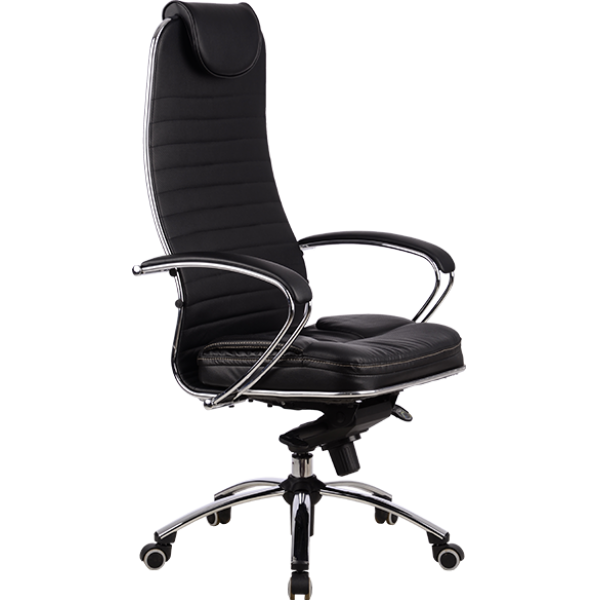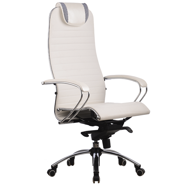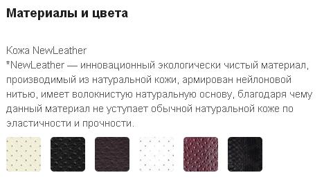 -Подголовник: мягкий комфортный из перфорированного износостойкого материала NewLeather* из натуральной кожи; -Подлокотники: стальные, покрытые зеркальным хромом, с мягкими накладками из износостойкого материала NewLeather* из натуральной кожи; -Спинка и сиденье: натяжные, из износостойкого перфорированного материала NewLeather* из натуральной кожи;