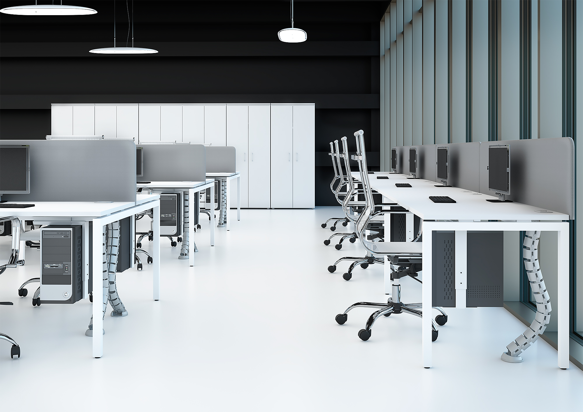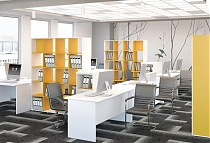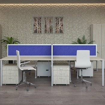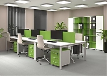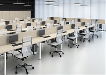 Металлокаркас представляют собой разборную, легко собираемую конструкцию, состоящую из опор и соединителей, стянутых между собой крепежными узлами. Опоры оборудованы регулировочными ножками, с возможностью регулировки по высоте. Металлокаркасы изготавливаются сечением 60х30, или 40х40, толщина трубы 2мм и окрашены порошковой краской в белый или серый цвет. В столешнице установлены два кабель-канала и лоток сетчатый для проводов. Все соединительные элементы оснащены фурнитурой для многократной сборки и разборки изделия. |